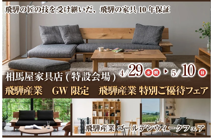 当店は国産ブランド家具を中心に、こだわり家具を幅広く取り揃え、飛騨家具やカリモク家具、ベッド・電動ベッドなど上質な家具をお届けしています。