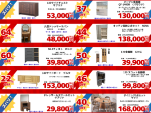 お得に家具を買い替えたい方、新生活で家具を揃えたい方、ブランド家具をお値打ち価格で手に入れたい方は、ぜひこの機会をお見見逃しなく!